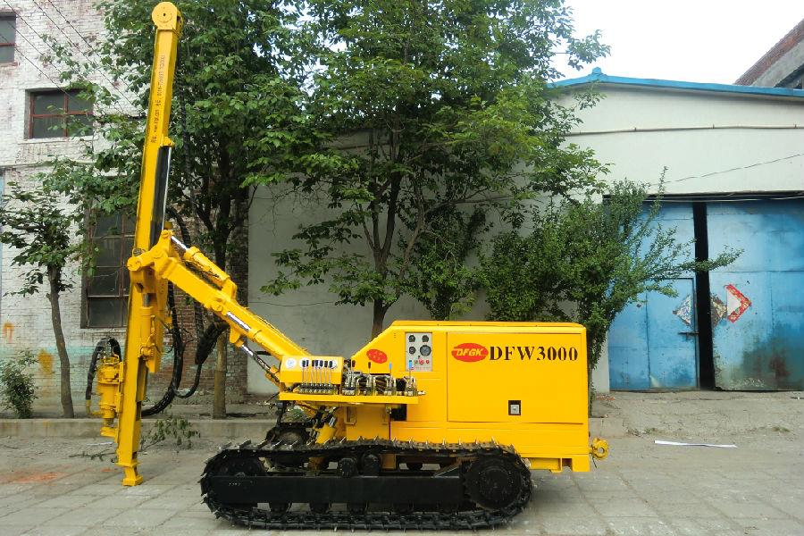 DFW3000型履帶式多角度潛孔鉆機(jī)行走部分采用大功率進(jìn)口液壓馬達(dá)驅(qū)動(dòng),驅(qū)動(dòng)力大,爬坡能力強(qiáng);結(jié)合多角度鉆臂,孔位范圍更寬;全液壓履帶式鉆機(jī)適用于露天礦山邊坡處理鉆孔作業(yè),邊角礦體處理鉆機(jī)作業(yè)及各類(lèi)石方工程鉆鑿爆破孔作業(yè)。